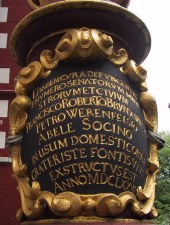 den Inschrift der Tafel an der Brunnensäule ist zu erkennen, wem die Errichtung dieses schönen Brunnens