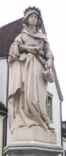 Die Plastik aus Stein zeigt die heilige Elisabeth (Sie lebte von 1207 -
