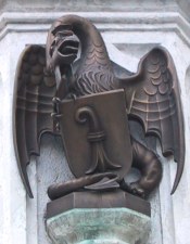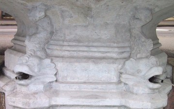 zwei als Delphine geformte Ausgüsse. |