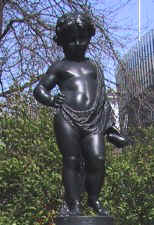 Plastik aus Gusseisen zeigt ein Mädchen, das sich ein Netz über die