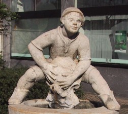 | Geschichte / Beschreibung: | Die Skulptur aus Stein zeigt einen Knaben, der auf einem runden Trog steht, welcher rundherum mit Tieren und Symbolen versehen ist. Bei diesem Brunnen handelt es sich um das Märchen "Hans im Glück" der Gebrüder Grimm: Als Belohnung für seine geleistete Arbeit erhält Hans von seinem Meister ein Stück Gold. Er macht sich damit auf den langen Heimweg. Unterwegs erlebt er verschiedene Abenteuer. Unter anderem mit den Tieren, die auf dem Trog zu erkennen sind. Letztendlich kommt er ohne sein Gold zu Hause an. Wegen seiner Erfahrungen unterwegs ist er aber trotzdem glücklich. | |