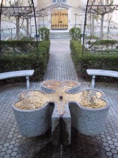 | Geschichte / Beschreibung: | Der Brunnen hat die Form eines Kleeblatts. Bei entsprechender Sonneneinstrahlung scheint das Wasser, golden zu sein. Der Wasserspeier steht in der Mitte des Brunnens. | |