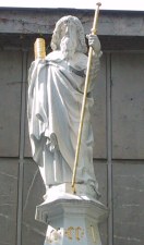 seine Statue, den Heiligen Jacobus, verpasst. Der Pilgerstab und das Buch