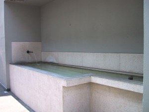 Es ist ungewohnt für einen Nischenbrunnen, dass die Wand nicht mit einem Bild versehen ist.