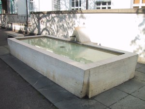| Geschichte / Beschreibung: | Dieser Brunnen aus Stein ist wohl der längste rechteckige Brunnen der Stadt. Ein Wasserspeier ragt aus einer dreieckigen "Brunnensäule". | |