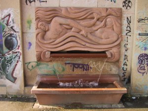 Geschichte / Beschreibung: | Der Wandbrunnen aus rotem Sandstein zeigt zwei Figuren im Wellenbad. Das Reservoir, an dessen Wand er sich lehnt, ist an das Pumpwerk "Lange Erlen" (siehe Brunnenführer-Referenz: 90) angeschlossen und erhält von dort das Trinkwasser, um die Stadt zu versorgen. | |