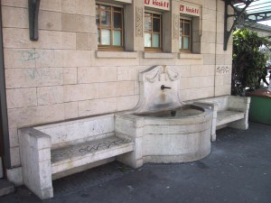 | Geschichte / Beschreibung: | Der Brunnen aus Stein hat einen Wasserspeier und bietet beidseitig Sitzgelegenheiten an. Die Wand oberhalb des Wasserspeiers ist mit zwei girlandenähnlichen Formen verziert. Wegen des Abzugs der Überlandlinien 10 und 11 im Jahre 2000 hat der Trambahnhof seine einstige Aufgabe verloren. Er wird aber heute noch gerne von den Fahrgästen der Linien 3 und 14 als Unterstand genutzt. | |