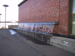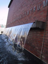 Die breite Fontäne an der Wand des UBS Ausbildungszentrums wurde mit der Gebäudeeinweihung 1994 in Betrieb genommen.